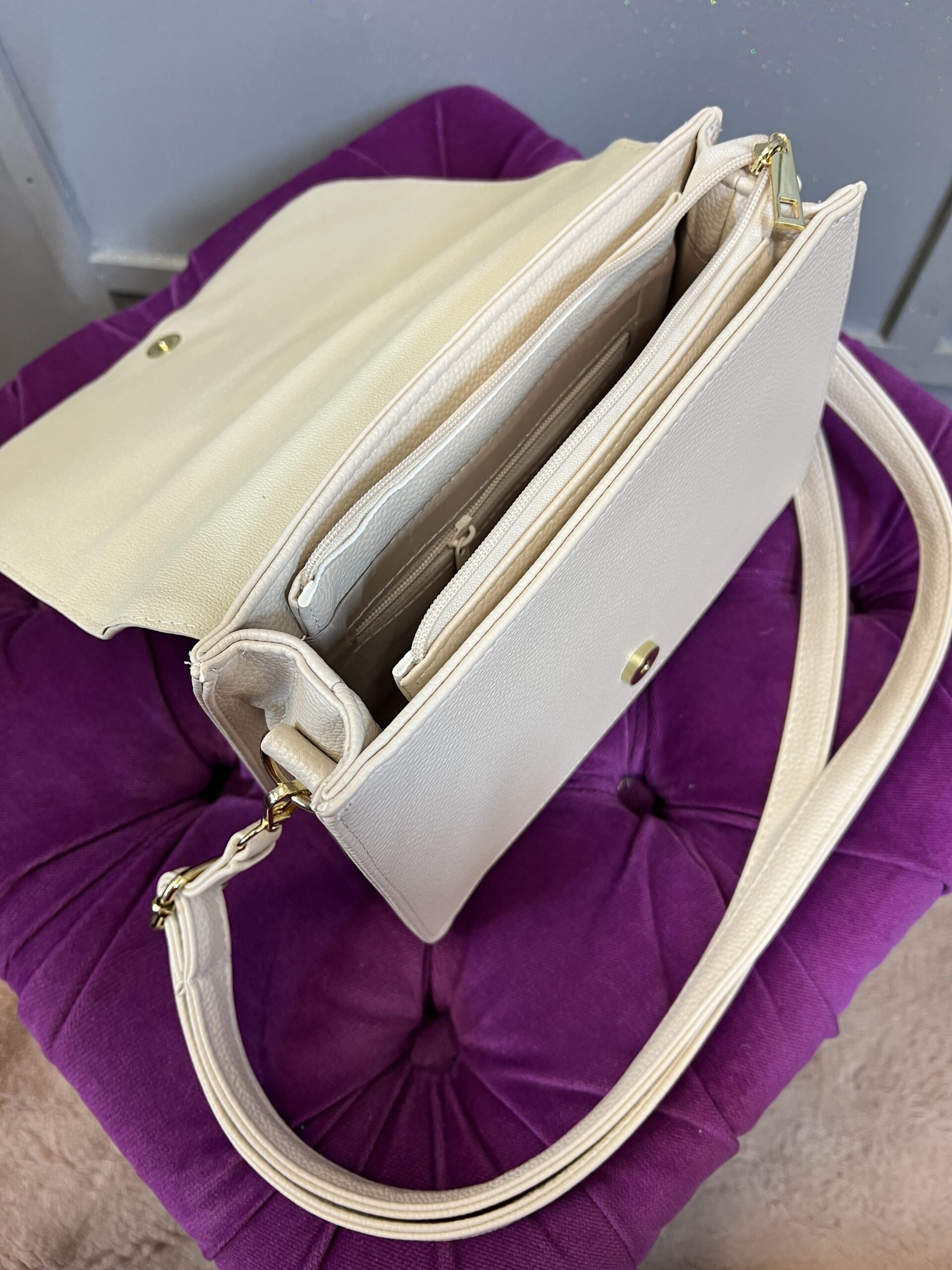 Elegancka torebka listonoszka. Wykonana z ekologicznej skóry. Wewnątrz znajduje się kieszeń zapinana na zamek oraz kieszeń otwarta. Na zewnątrz kieszeń zapinana na zamek. Idealny dodatek do wielu stylizacji.