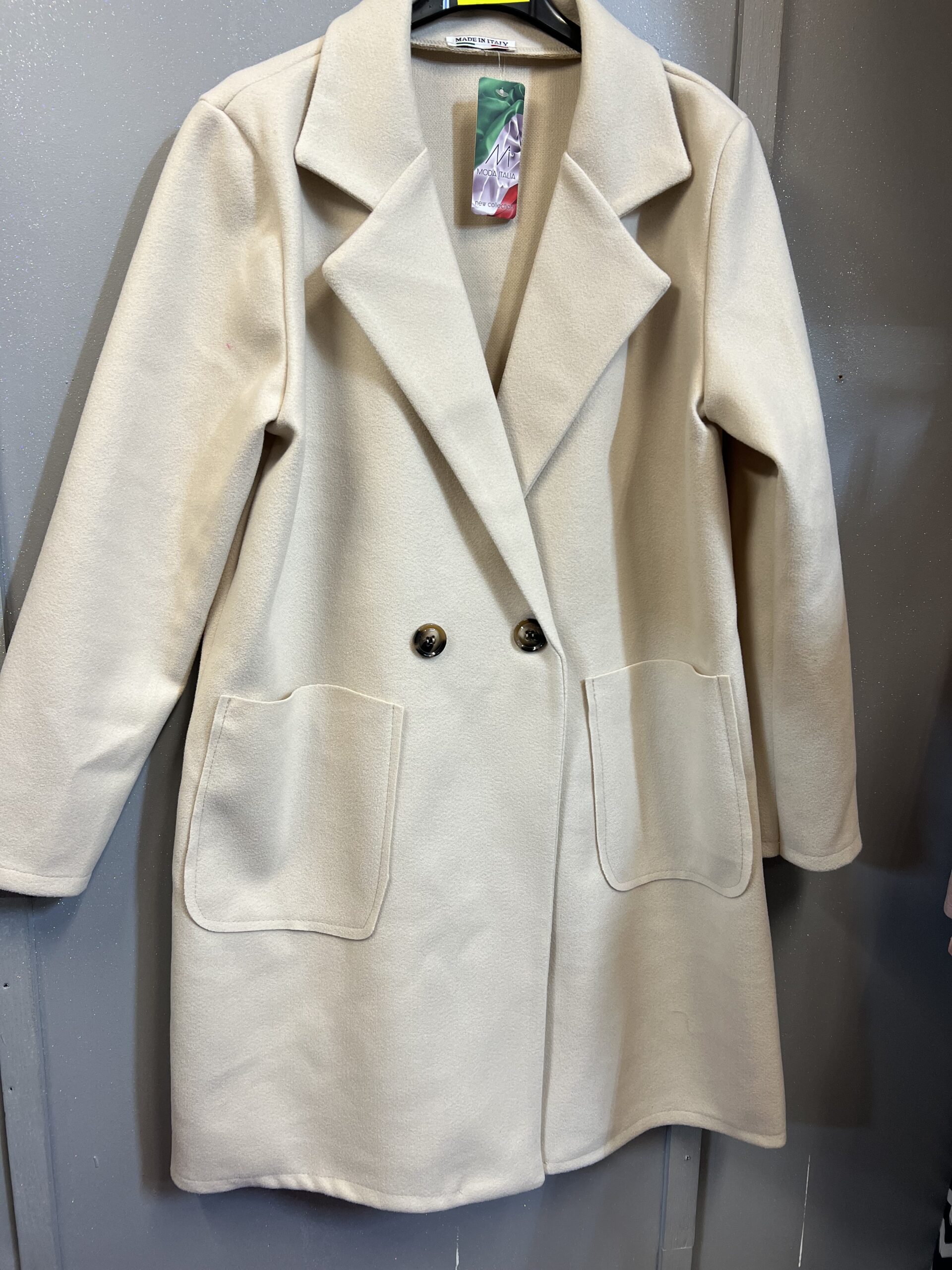 Płaszcz w kolorze fango w materiale tzw. flausz , z dwiema dużymi kieszeniami na przodzie oraz dwoma guzikami do zapięcia dwurzędowego. Całość ,przód i tył całkowicie gładki. Delikatny i swobodny do noszenia .Idealny na co dzień , do pracy i wyjścia okolicznościowe. Sprawdzi się w zestawie ze spodniami, spódnicą czy sukienką i przy każdego rodzaju obuwia.