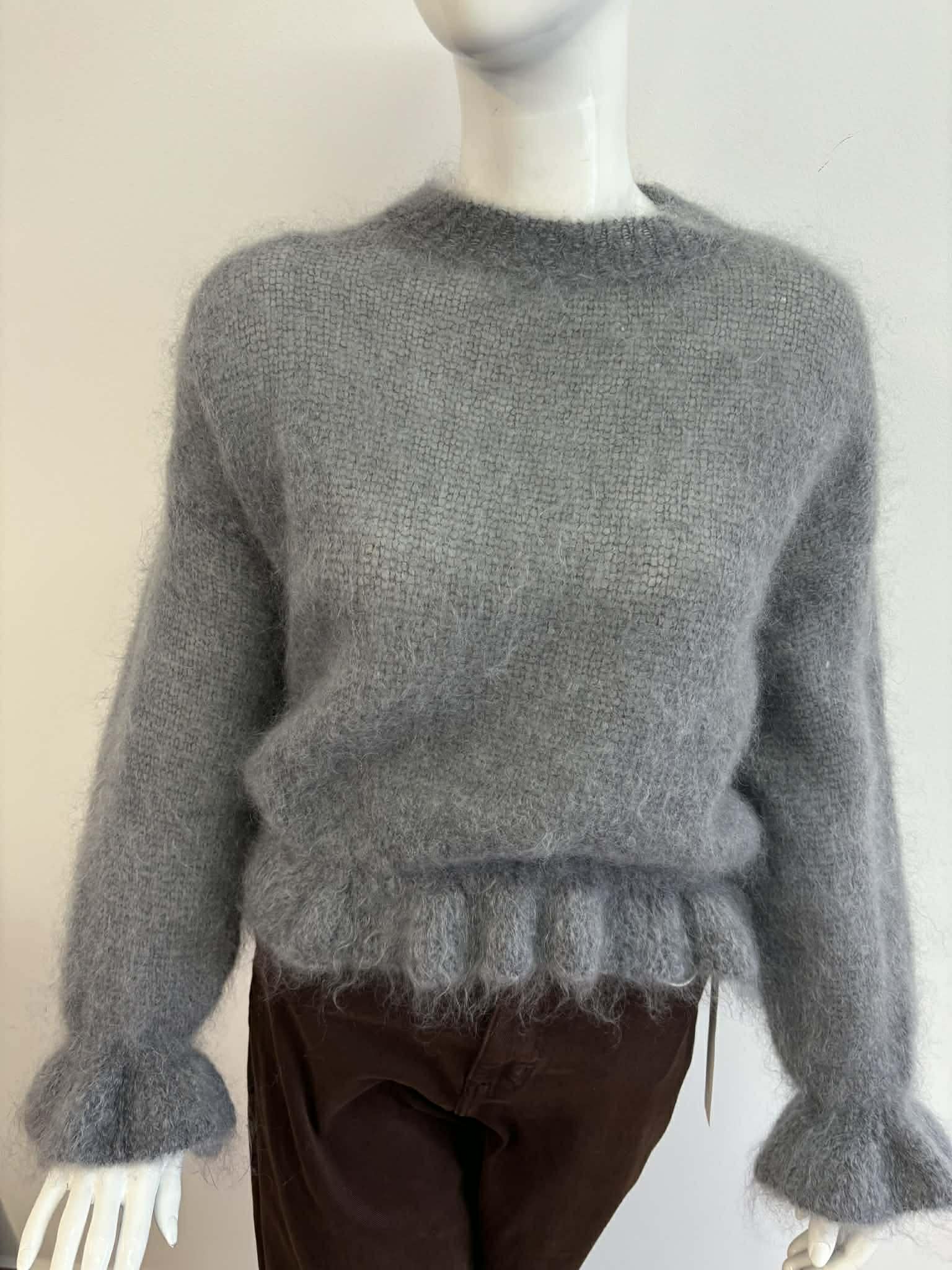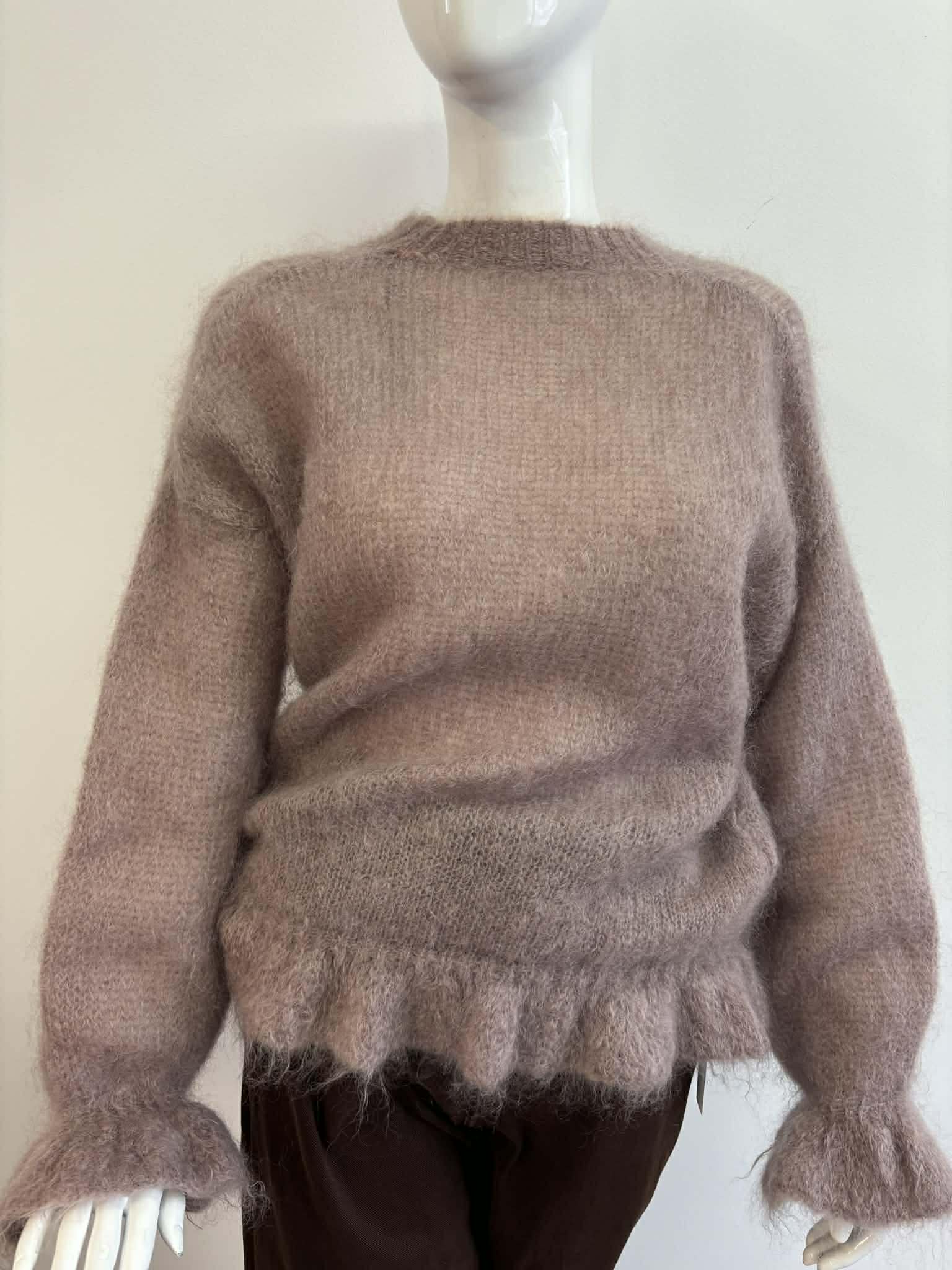 Sweterek z falbanką u dołu ,oraz na rękawach. Bardzo ciepły ,delikatny i cieniutki w pięknym kolorze fango.